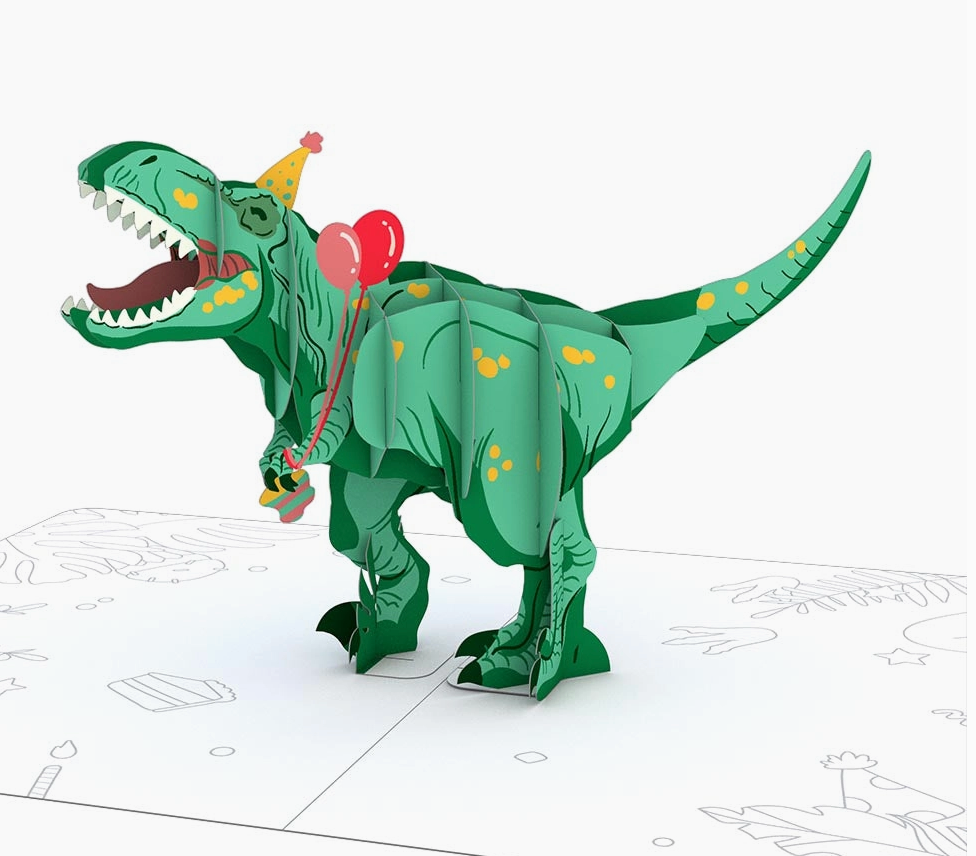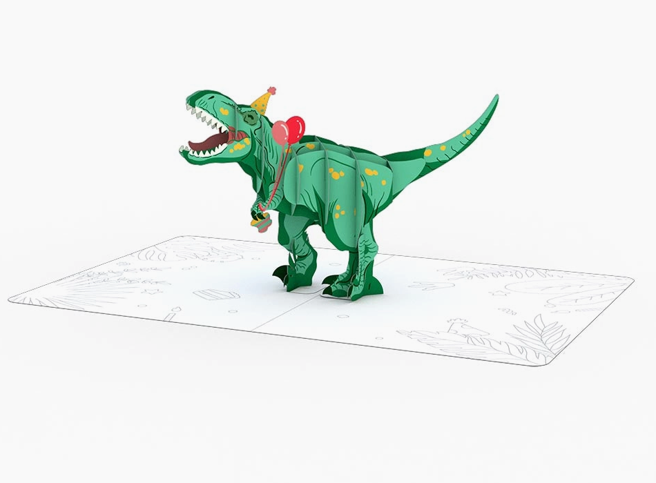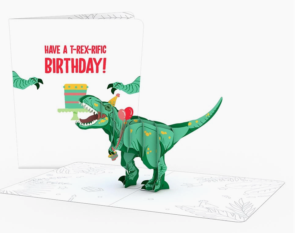 Lovepop first came to life with an imagination meets engineering approach to designing incredible paper art. Now, we've used that same technique to create a magical new line of children's products. Celebrate milestones and create magical moments with Playpop Cards™! Designed for kids of all ages, each card comes with a fun fact and stencil sheet, instantly transforming it into an interactive activity. "Have a t-rex-rific birthday!" is written on the cover of this Playpop Card. This roaring birthday design is the perfect way to celebrate a future archeologist's special day. Digital Experience: Discover even more magic online with the Lovepop Play digital experience - designed to extend the fun of Playpop Cards for ages 6 and up