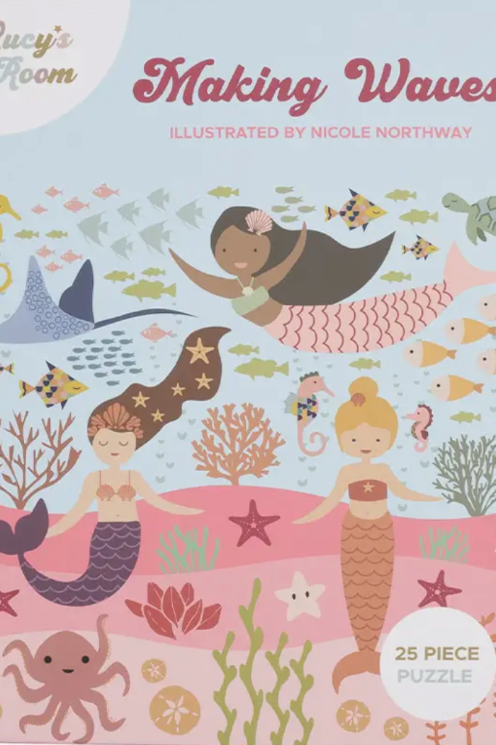 Little Ones will love our NEW Making Waves puzzle from Lucy's Room, featuring characters from the Making Waves Emerson and Friends mermaids print. This puzzle is a fun and engaging way to visit your mermaid friends every day.