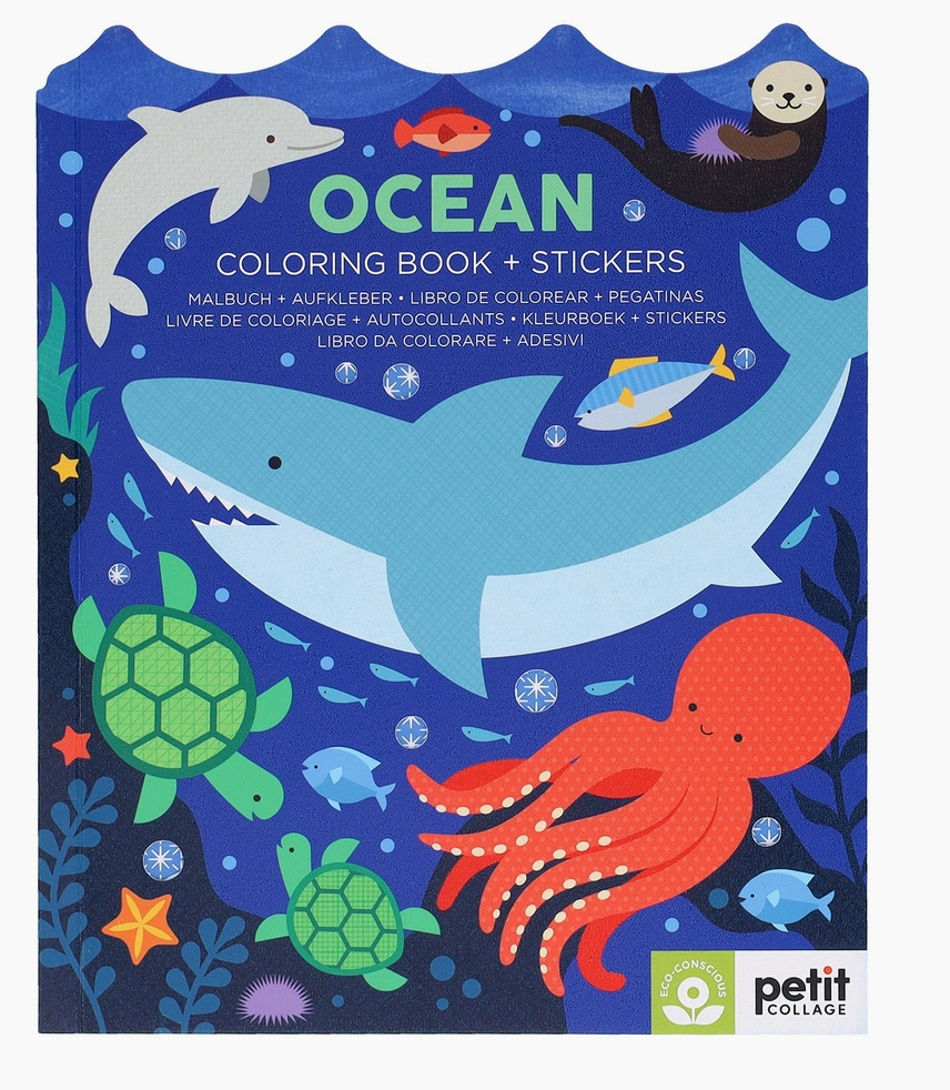Get your coloring pencils ready to create something special with the Ocean Coloring Book and Stickers from Petit Collage. Color in the underwater scenes featuring seals, seahorses, turtles, otters, and many more sweet swimming creatures! When you're done, decorate them with over 100 sea-themed stickers.