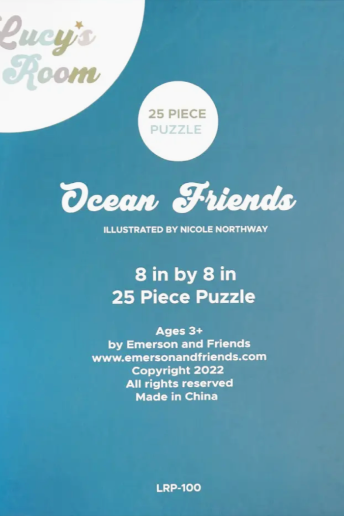 Little Ones will love our NEW Ocean friends puzzle from Lucy's Room, featuring characters from the Manatee and Ocean Friends Emerson and Friends prints and the Ocean Friends board book from Lucy's Room. This puzzle is a fun and engaging way to learn about the types of animals that live in the ocean.