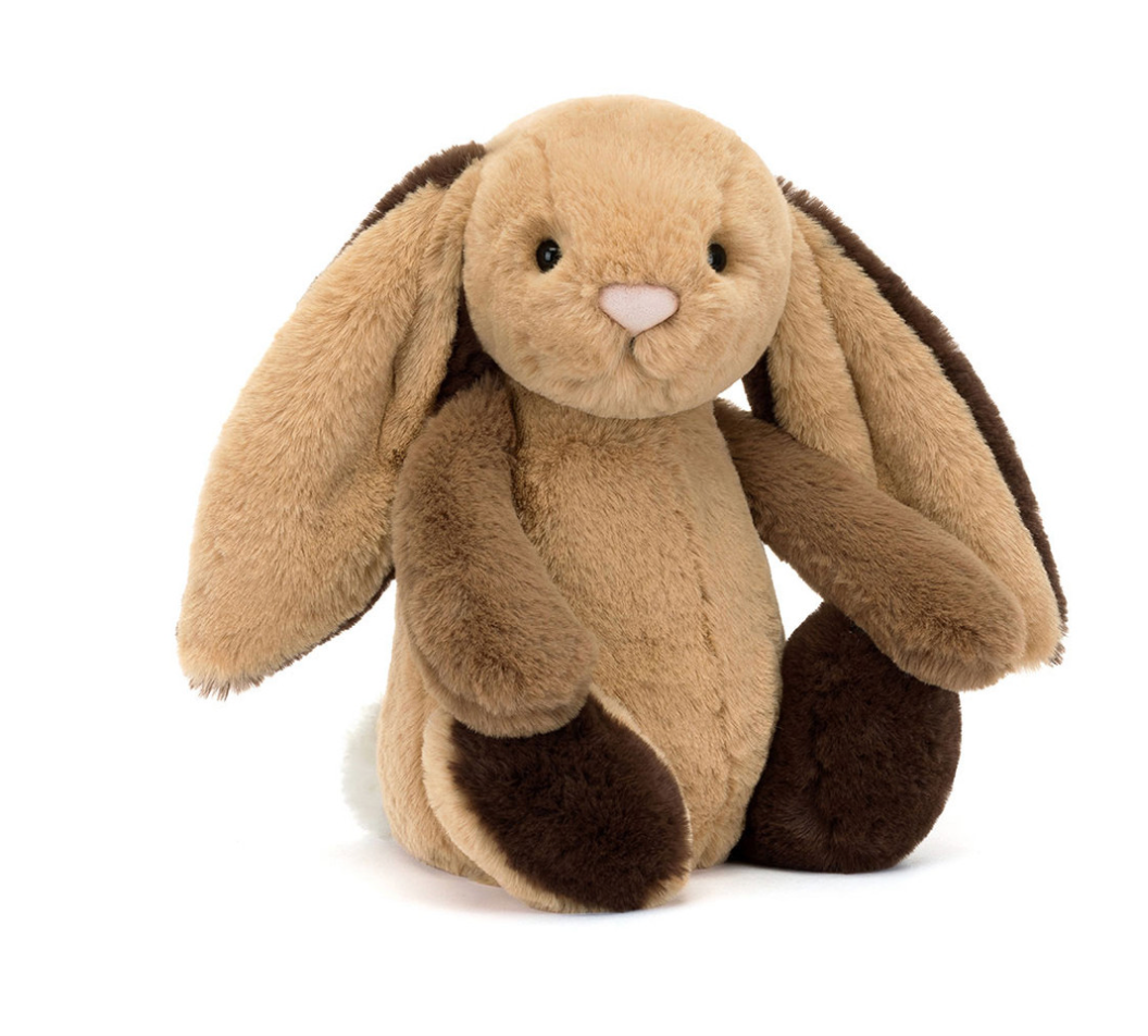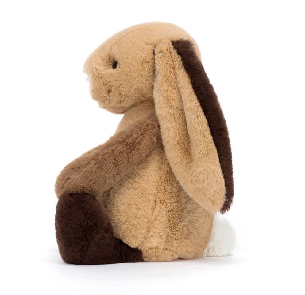 Bashful Patchwork Brown Bunny is soft and sweet in many shades of brown! From toffee to honey to chocolate, this bunny is a collage of iconic Bashful softness. With a fluffy cream bobtail and suedette pink nose, this bunny is the perfect companion to add a little joy to every day.