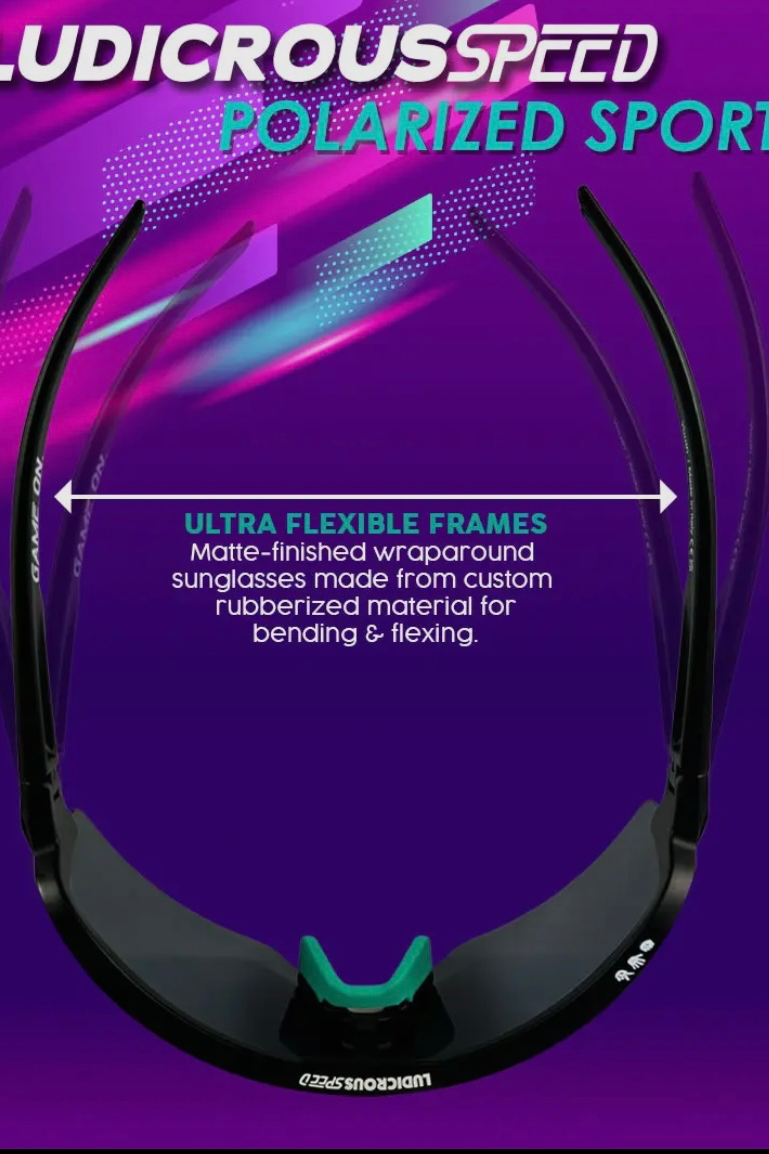 Ludicrous Speed polarized wraparound sunglasses are made in Italy with our famous flexible, bendable frame material and adjustable silicone nose pad to provide an ultra light, durable, comfortable fit. The polarized sports wrap lenses are designed for unmatched clarity to help you dominate whether you're a weekend warrior or future pro! Each pair comes with a pack of Slip Grips, for an extra pop of color and grip when needed on the field, pitch, bike, track or mountain. Polishing cloth also included. This unisex style is sized for for boys and girls, ages 5-15.