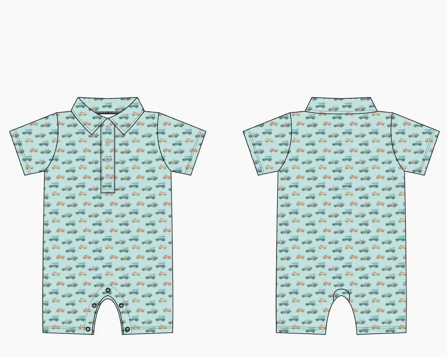 Let him look smart and feel great in this NEW! Polo Romper. * Short sleeves and short leg * Front button closure at neck and snap at inseam * Tagless size label for total comfort * Flexible for active lifestyles * Safe for sensitive skin