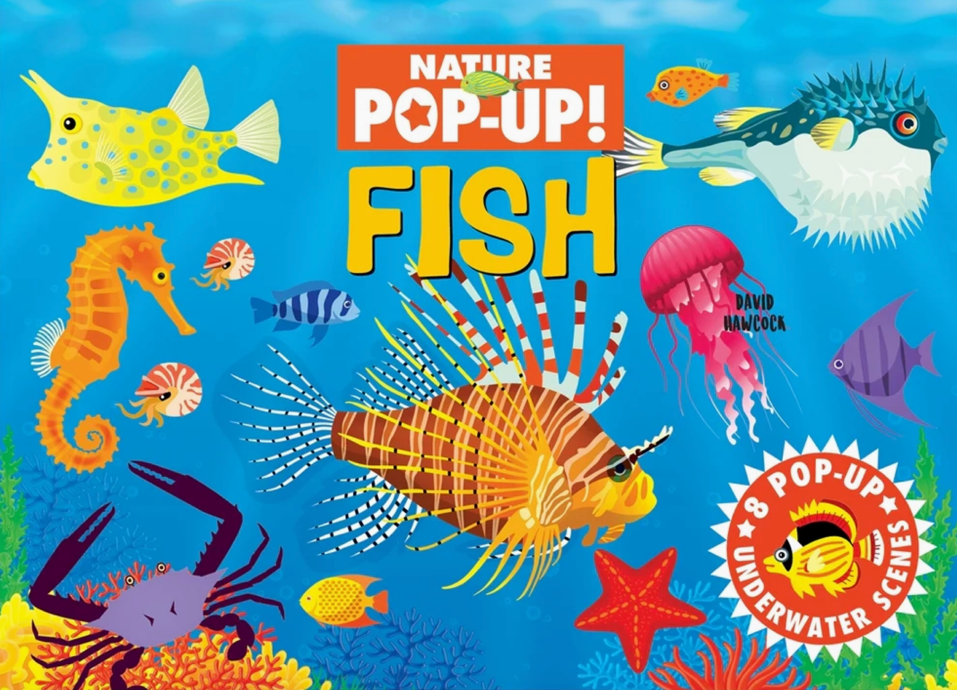 A colorful underwater experience awaits in the Fish pop-up book. In this entertaining and educational book, young curious minds will learn about different types of ocean creatures with its 8 multi-tiered pop-up vignettes. This beautifully illustrated book captures the imagination with its vibrant design and fun facts for each of the unique scenes including tropical fish, freshwater fish, scary fish, clams, strange creatures, giants of the sea, shoreside creatures, and the most dangerous fish.16 pages.
