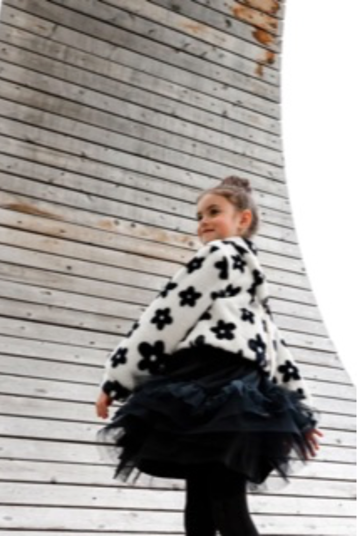 An allover flower print adds one-of-a-kind style to this versatile faux fur jacket. Our Faux Fur Jacket Off White With Black Flower Pattern is made from poly faux fur and features long sleeves, a tab neckline, and a slightly cropped, boxy fit.