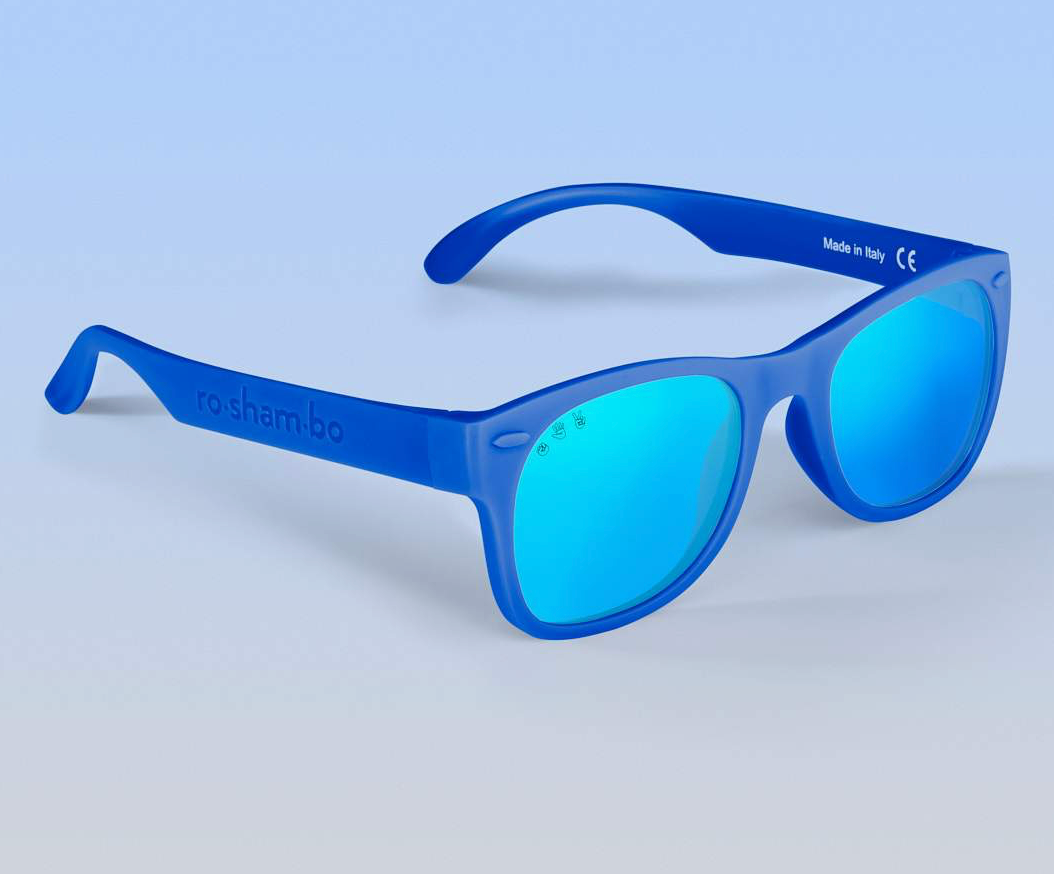 Our royal blue "Milhouse" sunglasses with polarized lenses: + 100% UVA/B/C protection and shatter resistant, with added glare reduction to reduce eye strain and protect your eyes. + Made in Italy like your designer shades, and assembled in USA. + Nearly indestructible: we offer a full damage and lens replacement guarantee. + Certified BPA, lead, and latex free. Small parts tested as safe for babies