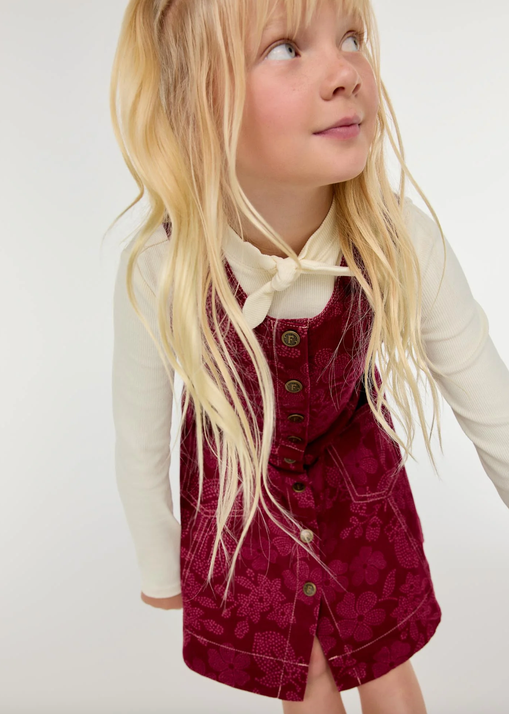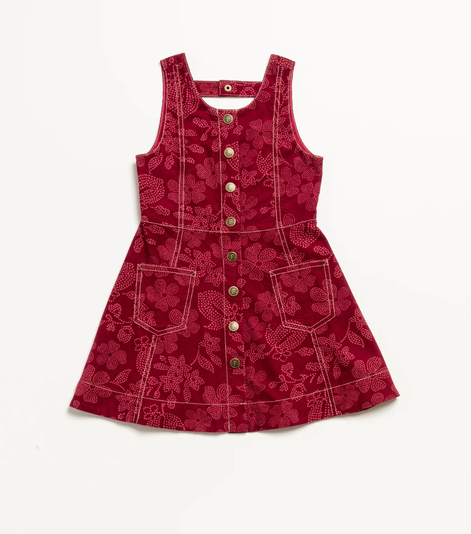 All rise for the queen of the season! The Royal Plum Dress, crafted from custom printed corduroy, offers a luxurious feel with its soft yet structured texture and subtle luminous shine. Designed with expert attention to detail, it features a functional branded snap placket for easy wear, peachy contrast stitching that adds refined visual interest, and a distinctive snap tab at the back neck for a polished finish. This dress balances comfort and style effortlessly, making it a standout piece for any wardrobe. For a sophisticated and vibrant look, pair it with the Harvest Stripes Tee to create a triumphant mix of color and texture.