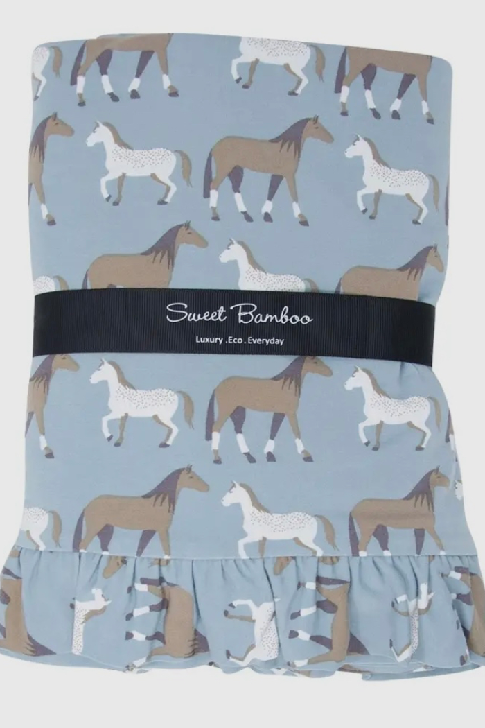 This generous 35 x 35 inch, double layer, bamboo blanket blanket is trimmed with 2 inches of sweet ruffles. Our signature bamboo fabric is good for the Earth and your children. This piece is perfect for everyday use.