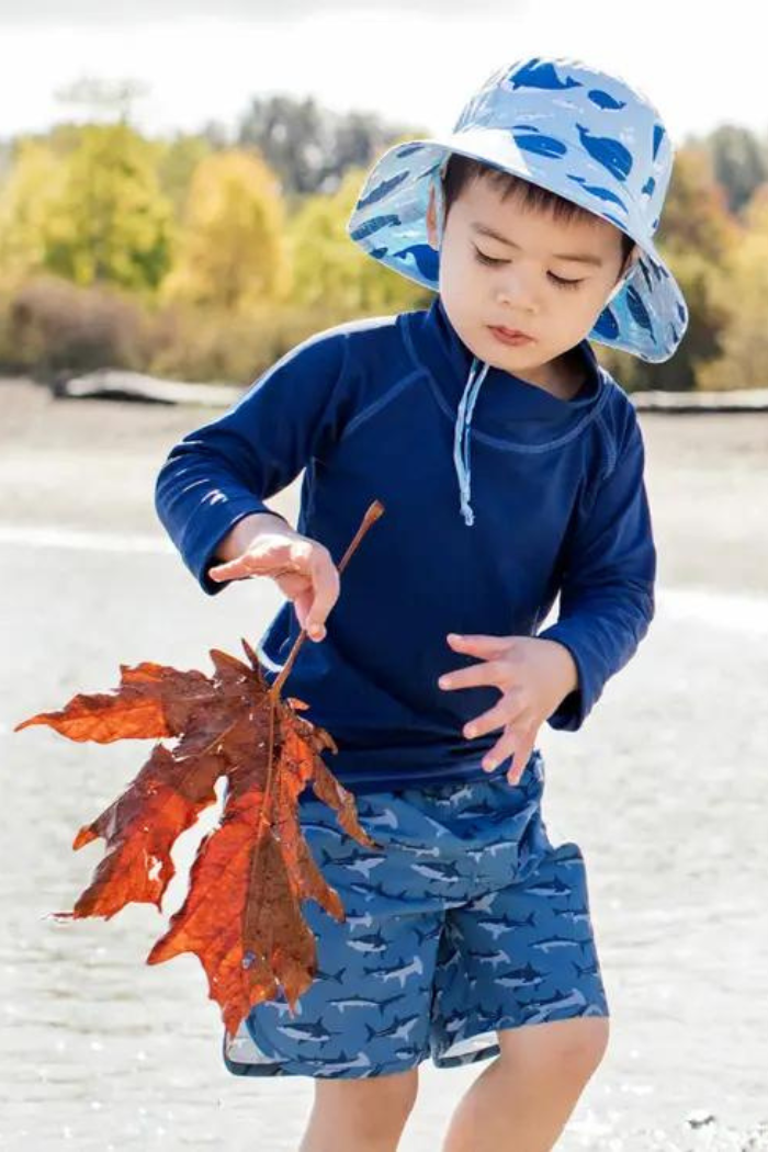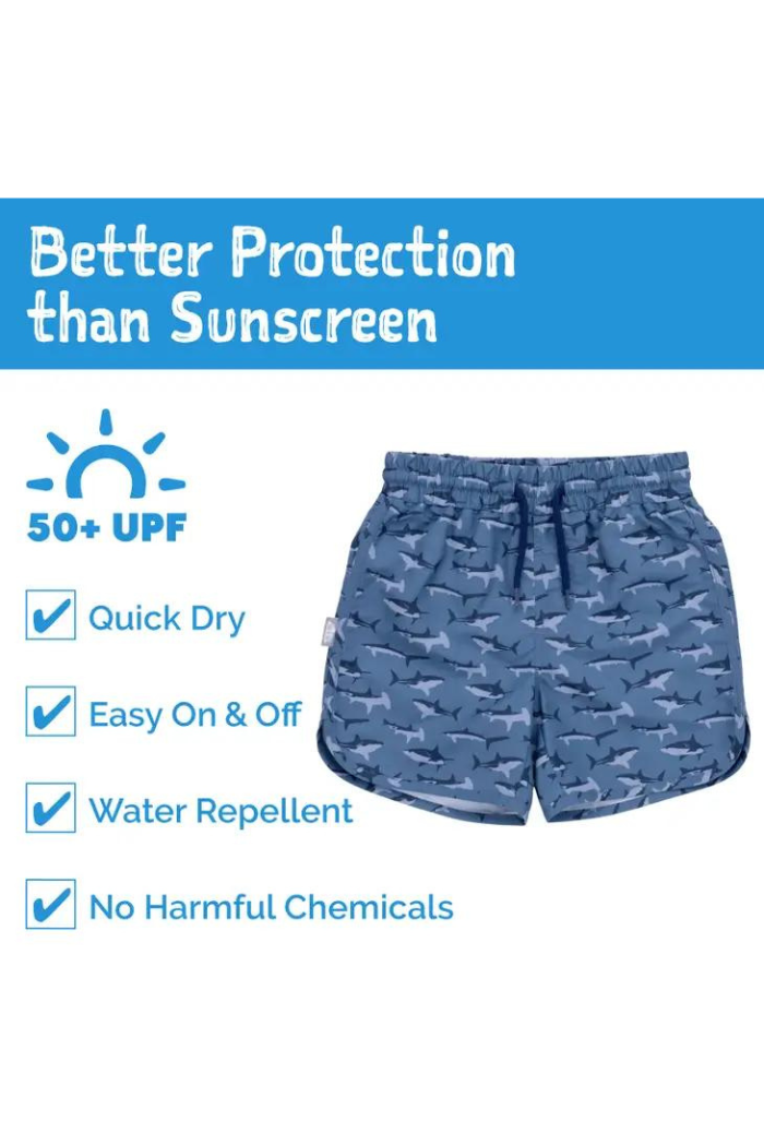 Our Sun & Splash kids swim shorts are made with water-repellent Aqua-Dry fabric which is lightweight and dries quickly. These swim shorts are versatile and comfortable for all your summer adventures! Perfect for swimming, waterplay, and even everyday wear around town on hot summer days. Choose from a variety of adorable prints, designed in-house, and made to mix and match with the rest of our summer gear!