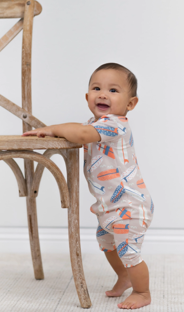 The Shortie surfboard outfit is an essential addition to your child's summer wardrobe, designed with both style and comfort in mind. Featuring short sleeves and cropped pants, it offers a perfect balance of breathability and ease of movement for active little ones. The front snap closure ensures quick and hassle-free dressing, while the tagless size label eliminates irritation, making it ideal for sensitive skin. Crafted to support an active lifestyle, this versatile piece keeps your child comfortable and looking effortlessly cute throughout the season. A reliable choice for parents seeking quality and practicality in everyday wear.