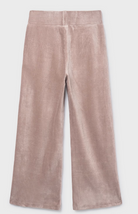 Flared style trousers for girls, wide at the bottom. Elastic waistband. Warm corduroy knitted fabric of great comfort and softness