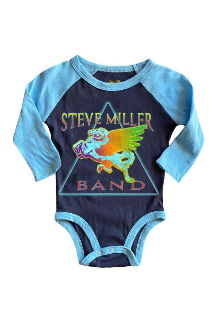 One of our all time favorites Steve Miller Band meets our classic Rowdy Sprout one piece- our retro raglan onesies are inspired by real vintage tees!