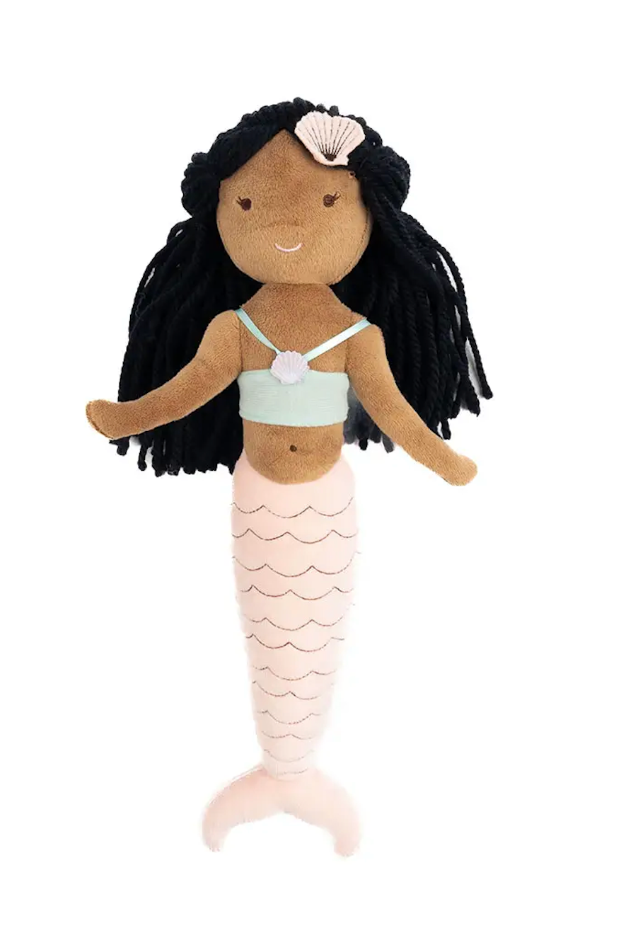Meet Sabrina! Straight from our Making Waves mermaids print from Emerson and Friends, this delightful mermaid doll has swum up from the sea to play with you! Made of ultra soft polyester and stuffed with fluffy poly-fil, she is comfortable and safe for hugging, play, and sleep. A perfect gift for children of all ages!