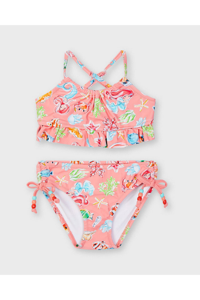 Refreshing two piece swimsuit for girl 2 to 9 years, perfect for stylishly enjoying the summer days at the beach. Elastic, flowing fabric for maximum comfort on a day to day basis.