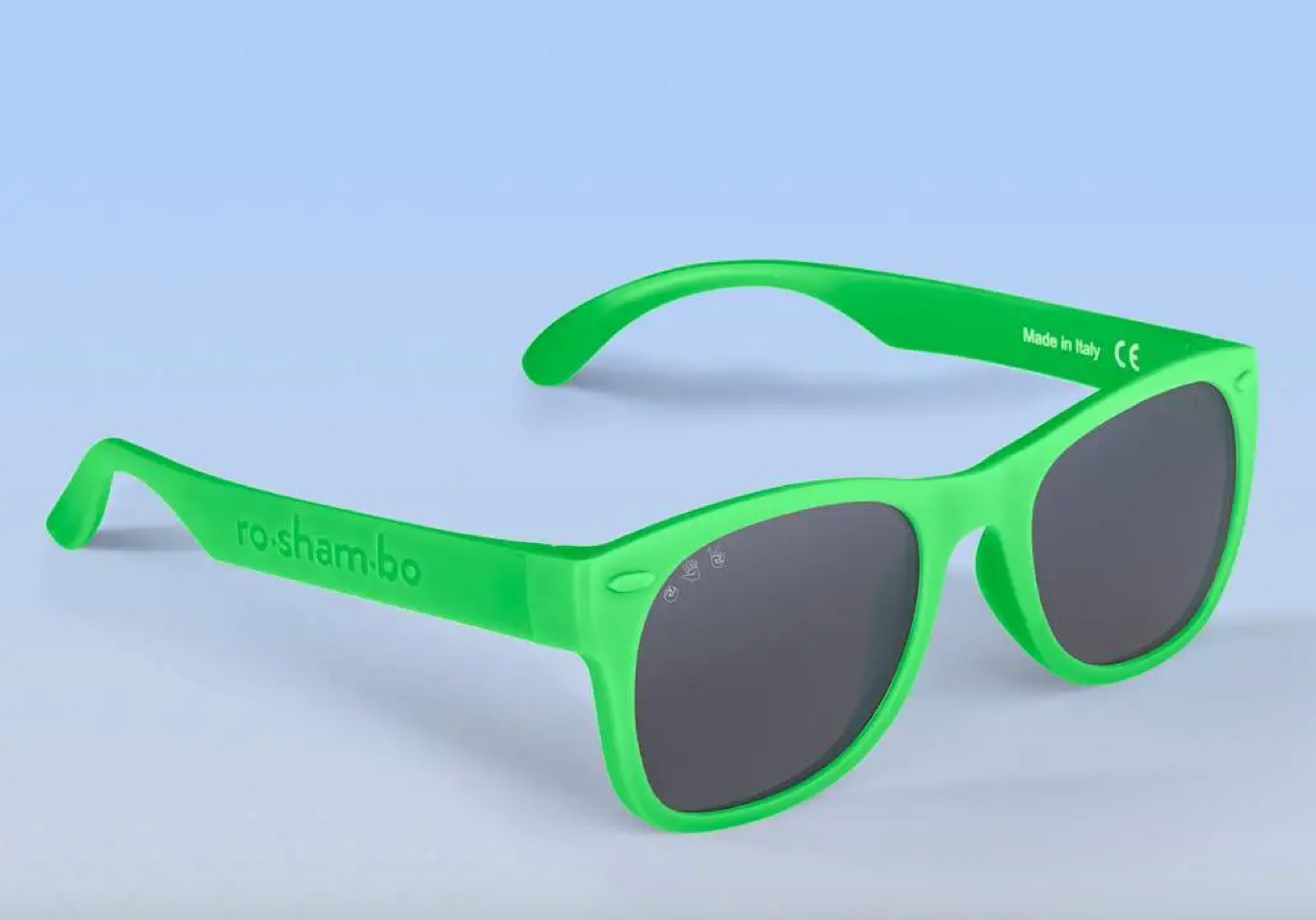 Our bright green "Slimer" sunglasses with polarized lenses: