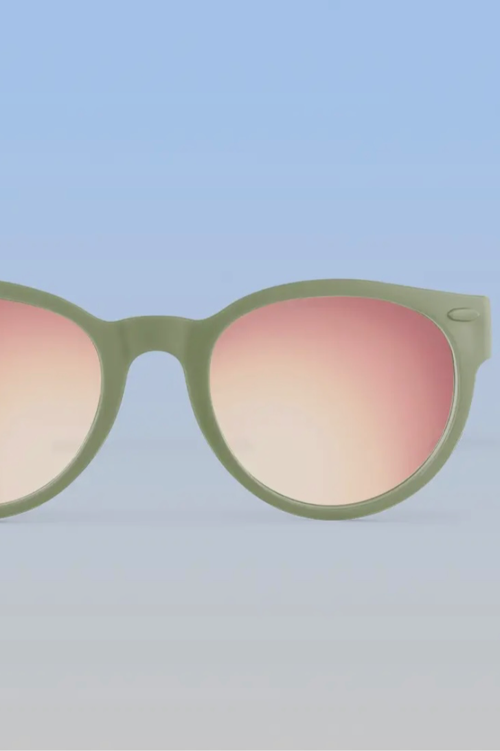 Sunglasses - Round Sage Green with Rose Gold Polarized mirrored lens