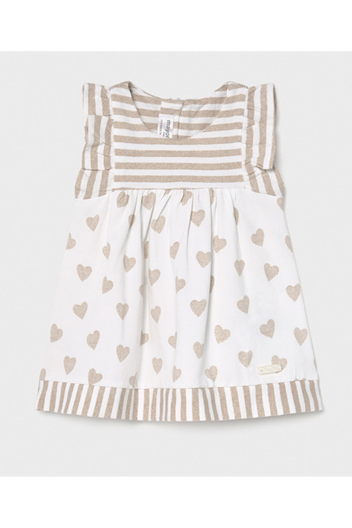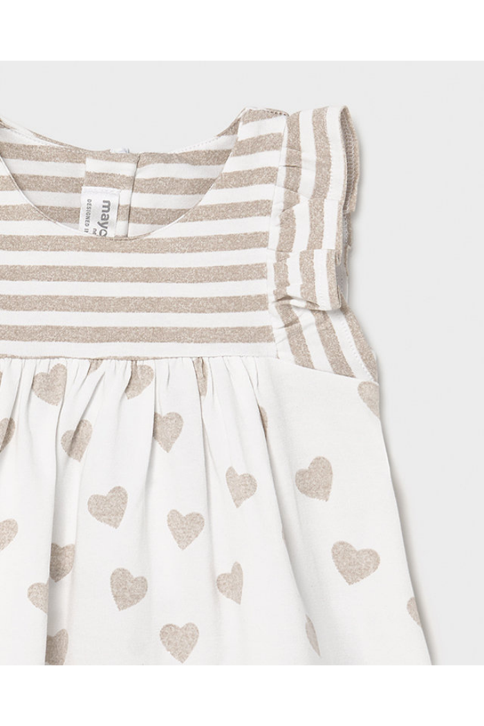 Short raglan sleeve Dress for newborn girl. Round neckline. Fitted to the chest. Opening on the back with an invisible zip. Made from soft elasticated cotton fabric.