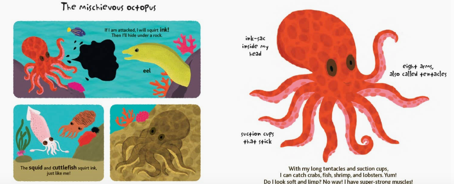 Touch and Explore: The Ocean is a multisensory journey for children who want to do more than just listen! Scales, tails, flippers, and fins—let's dive into the ocean: The Touch and Explore™ series, already bestsellers in their original French editions, are well-crafted interactive titles that encourage hands-on engagement, learning and knowledge retention. As you move through each page, young readers can touch shiny scales and bumpy barnacles, turn a flap to find a clownfish hiding among an anemone, touch a shark's sandpapery skin, and discover who can squirt ink and change color! It's a trip to an underwater world that's just a touch away. • A splashy treat for visual learners and pre-readers, kids can discover the facts, feel, and functions of over two dozen marine animals • Bright illustrations encourage kids to immerse themselves in a fascinating beyond-the-bathtub habitat • Sturdy board book design is just the right size for small hands • Ages 3 to 5