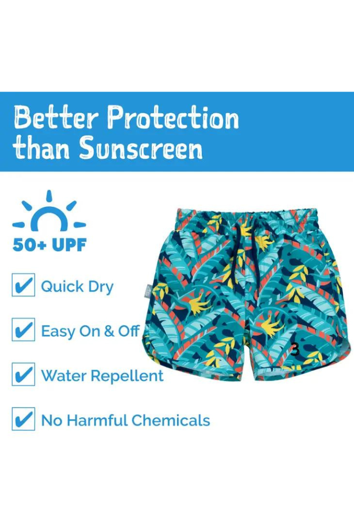 Our Sun & Splash kids swim shorts are made with water-repellent Aqua-Dry fabric which is lightweight and dries quickly. These swim shorts are versatile and comfortable for all your summer adventures! Perfect for swimming, waterplay, and even everyday wear around town on hot summer days. Choose from a variety of adorable prints, designed in-house, and made to mix and match with the rest of our summer gear!