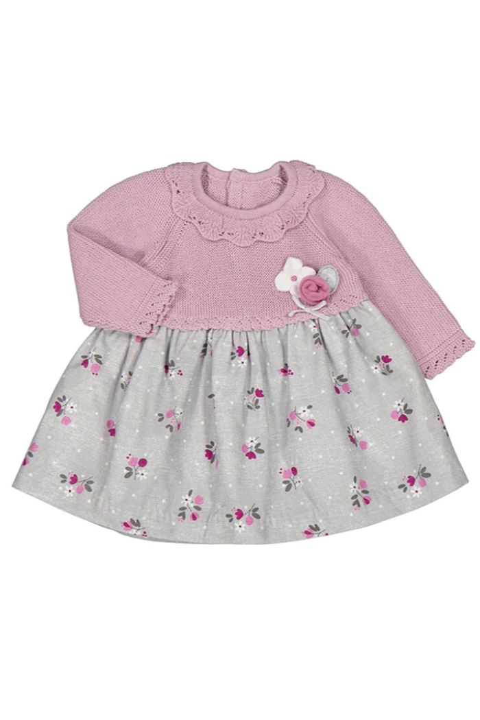 This beautiful Mayoral baby girl floral knit dress is a great pick for any special occasion. Crafted with a round neck and long sleeves, this dress has a frill collar and a floral printed skirt, plus a convenient button closure to the back.
