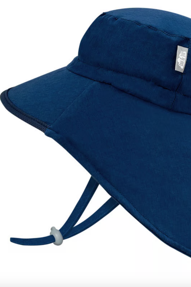 Our unique “Adventure” style features an extra-wide EVA brim with a generous neck flap for ultimate coverage from the sun. Lightweight and quick-dry, with a breathable mesh liner and cotton sweatband for ultimate comfort. This Gro-With-Me® sun hat is guaranteed to fit your little one with a fully adjustable head drawstring and adjustable chinstrap.