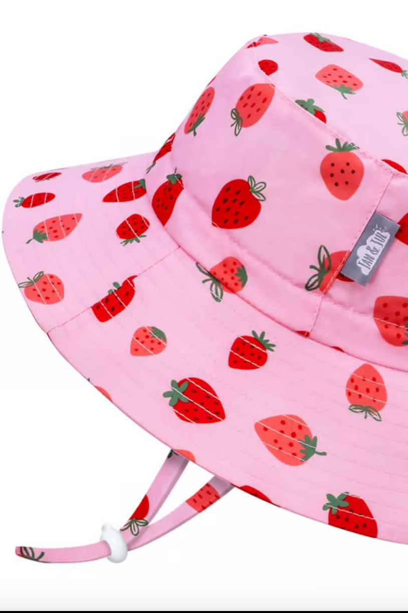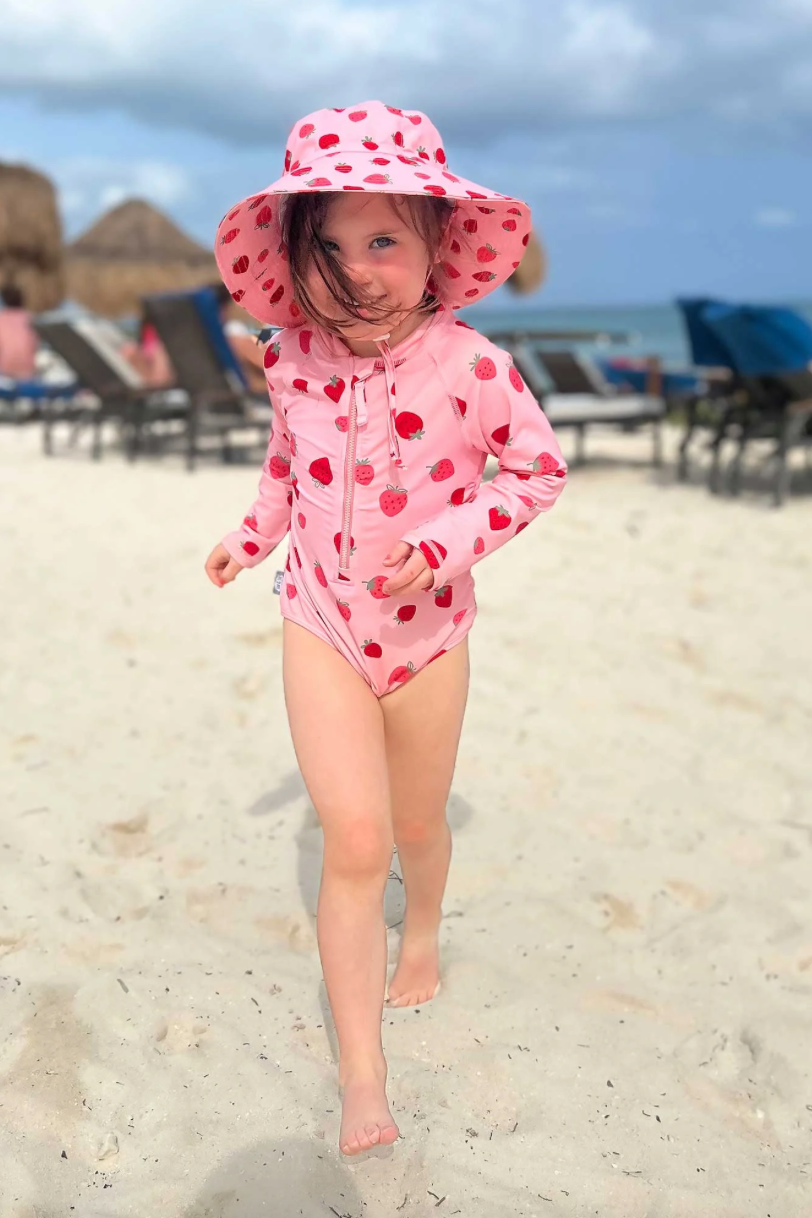 Kids Water Repellent Bucket Hats | Pink Strawberry