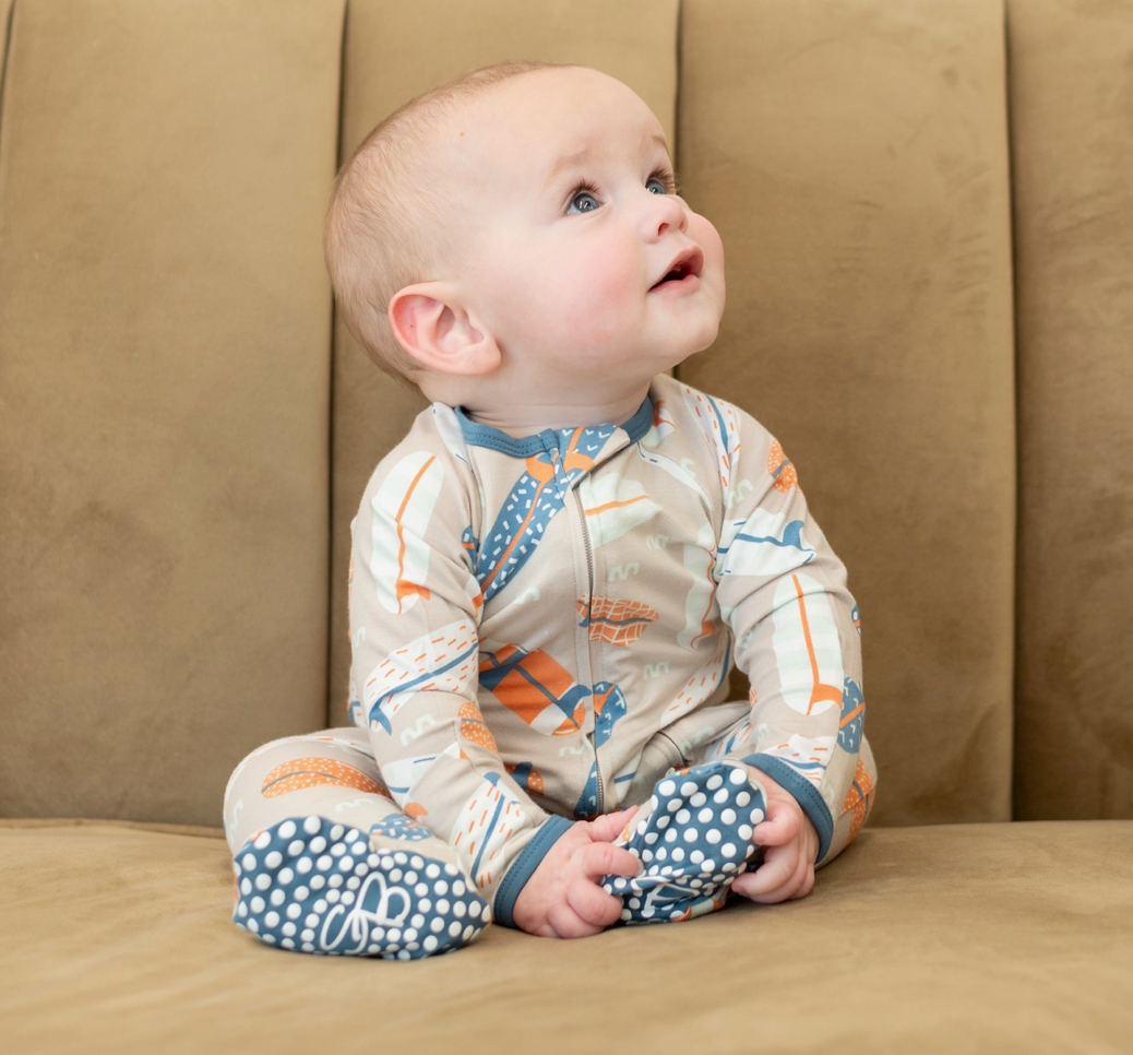 The Zipper Footie - Surfboards romper combines thoughtful design with premium comfort for your little one. Crafted from soft, breathable bamboo fabric, it gently contours to your baby's shape while being safe for sensitive skin.